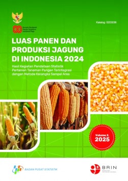Laporan ini menyajikan data luas panen dan produksi komoditas jagung tahun 2024. Survei KSA mencatat luas panen jagung mencapai 2,55 juta hektare di tahun 2024 dengan rata-rata sekitar 212,39 ribu hektare per bulan. Lima provinsi dengan luas panen terluas yaitu Jawa Timur, Jawa Tengah, Sumatera Utara, Sulawesi Selatan, dan Nusa Tenggara Barat. Sementara itu, lima provinsi dengan luas panen terendah adalah Kepulauan Bangka Belitung, Kepulauan Riau, Papua Pegunungan, Kalimantan Utara, dan Papua Barat Daya. Data produksi jagung yang disajikan diestimasi dengan memadukan hasil KSA dengan data dari Survei Ubinan di tahun 2024 dan Survei Konversi Jagung 2020 (SKJG2020). Produksi jagung pipilan kering berkadar air 28 persen mencapai 20,48 juta ton dengan rata-rata perbulan sekitar 1,71 juta ton pada tahun 2024. Sementara itu, produksi jagung pipilan kering berkadar air 14 persen mencapai 15,14 juta ton dengan rata- rata sekitar 1,26 juta ton per bulan. Lima provinsi sentra produksi jagung pipilan kering berkadar air 14 persen terbesar adalah Jawa Timur, Jawa Tengah, Sumatera Utara, Nusa Tenggara Barat, dan Sulawesi Selatan. Sementara itu, lima wilayah dengan produksi terkecil yaitu Kepulauan Bangka Belitung, Kepulauan Riau, Papua Pegunungan, Kalimantan Utara, dan Riau. KSA Jagung juga merekam informasi tambahan berupa fase pertumbuhan lainnya komoditas jagung dan juga kondisi lahan titik segmen sampel. Informasi tambahan yang diperoleh dari amatan tersebut meliputi luas tegakan tanaman yang di dalamnya termasuk luas fase vegetatif awal, vegetatif akhir, reproduktif awal, dan reproduktif akhir. Selain itu, estimasi juga dilakukan untuk menghasilkan luas panen hijauan, panen muda, potensi gagal panen, persiapan lahan, lahan diberakan, dan lahan pertanian ditanami selain jagung. |
