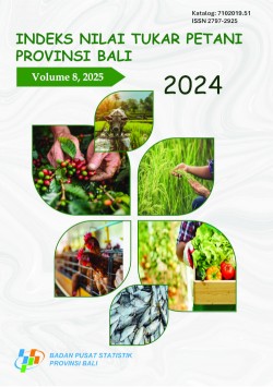 Publikasi Indeks Nilai Tukar Petani Provinsi Bali 2024 menyajikan data dan informasi tahun 2024 mengenai kemampuan petani dalam memenuhi kebutuhan rumah tangga dan usaha pertaniannya yang mencakup data subsektor pertanian tanaman pangan, subsektor tanaman hortikultura, subsektor tanaman perkebunan rakyat, subsektor peternakan, dan subsektor perikanan. Selain data indeks Nilai Tukar Petani (NTP), publikasi ini juga menyajikan mekanisme penghitungan indeks NTP seperti konsep definisi, metodologi, maupun diagram timbang. |