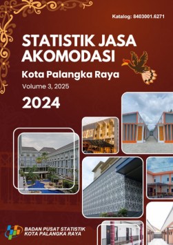 Statistik Jasa Akomodasi Kota Palangka Raya 2024 merupakan publikasi tahunan yang diterbitkan oleh Badan Pusat Statistik (BPS) Kota Palangka Raya. Secara garis besar, publikasi ini bersumber dari hasil kegiatan pendataan hotel di Kota Palangka Raya yang dilaksanakan setiap bulan dari Januari sampai Desember 2024. Sumber data diperoleh dari laporan manajemen hotel baik bintang maupun non bintang. Untuk merepresentasikan jasa akomodasi, publikasi ini memuat beberapa indikator statistik jasa akomodasi seperti tingkat penghunian kamar hotel (TPK), jumlah tamu yang menginap, dan rata-rata lama tamu menginap (RLTM). |