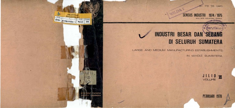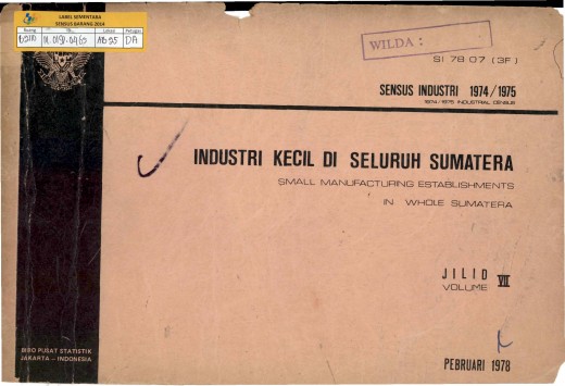 SENSUS INDUSTRI 1974/1975 --INDUSTRI KECIL DI SELURUH SUMATERA JILID VII FEBRUARI 1978