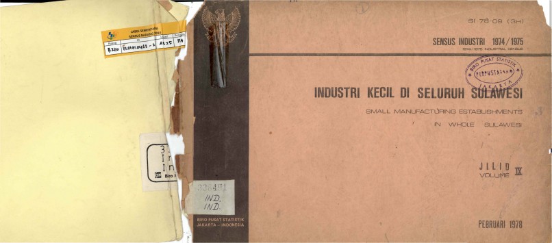 SENSUS INDUSTRI 1974/1975 --INDUSTRI KECIL DI SELURUH SULAWESI JILID IX FEBRUARI 1978