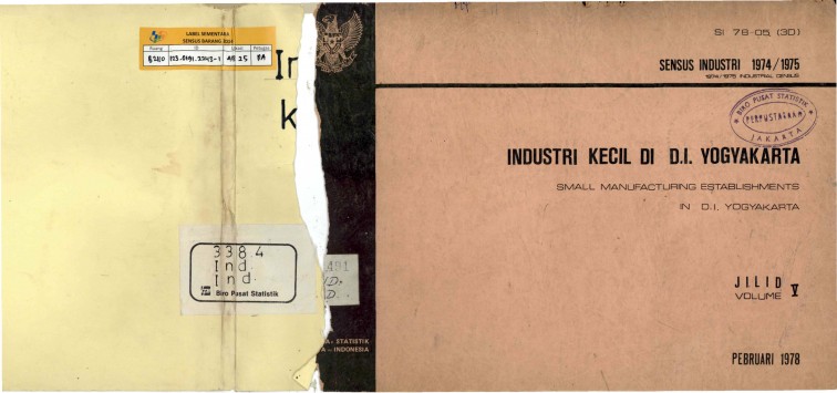 SENSUS INDUSTRI 1974/1975 --INDUSTRI KECIL DI DI YOGYAKARTAJILID V FEBRUARI 1978