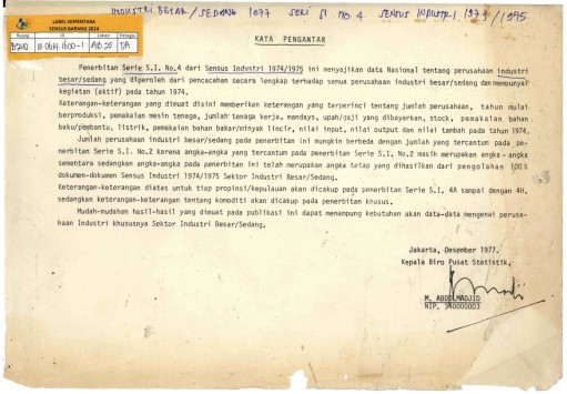 INDUSTRI BESAR / SEDANG 1977 SERIE SI NO 4 SENSUS INDUSTRI 1974/1975